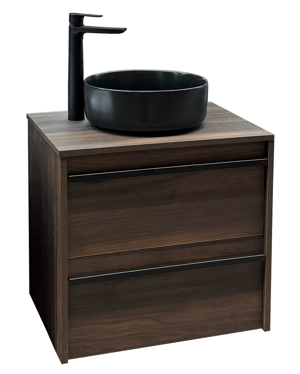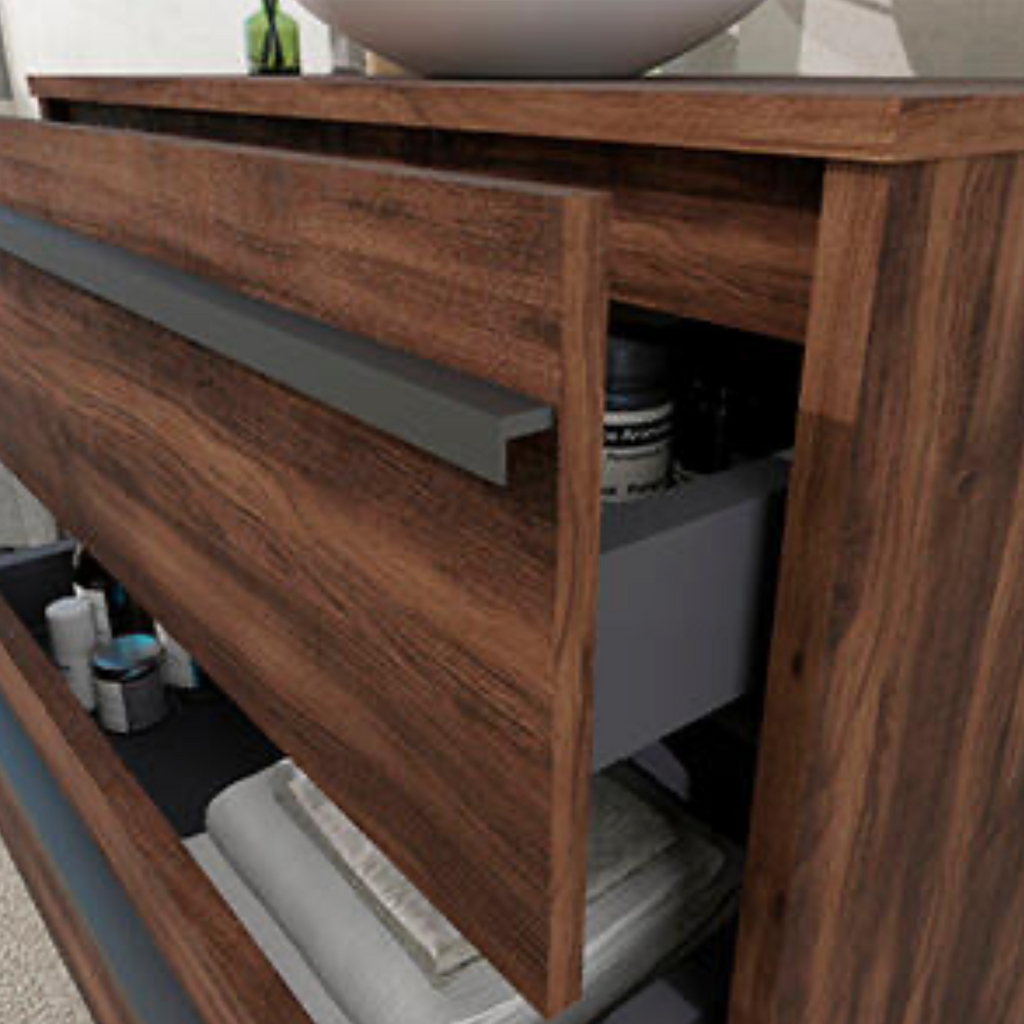 وحدة حوض الحمام الأنيقة المصنوعة من خشب روبل أوسكورو الداكن، تتميز بتصميم عصري ووظائف متطورة. الوحدة مُجمّعة مسبقًا، وتتميز بدرجين ناعمي الإغلاق على مجاري هيتيش عالية الجودة، مما يسمح بإغلاق هادئ ولطيف.