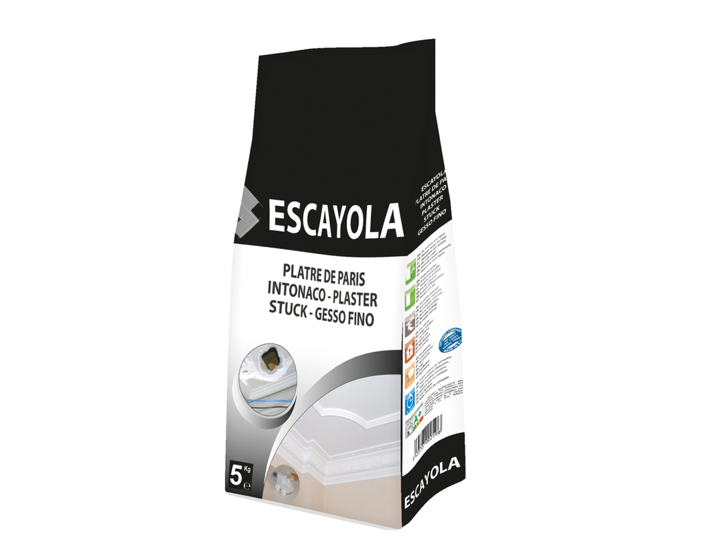 Feinkörnige Escayola (hochfeiner Gips) von Baixens – ideal für dekorative Gipsarbeiten im Innenbereich. Perfekt geeignet zum Formen von Figuren, Befestigen und Reparieren von Gipsstückaturen sowie zum Ausfüllen von Löchern in Abhängigkeit mit Deckenverkleidungen. Kurze Arbeitszeit mit schnellem Anziehen.