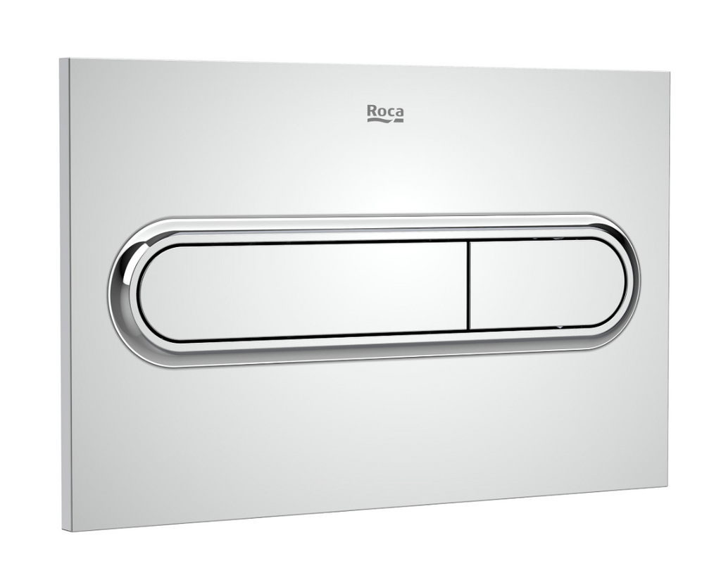 Dual-Pulldruckplatte in Chrom – elegante, platzsparende Auslösung mit zwei Spülmengen, ca. 25 × 16 cm.