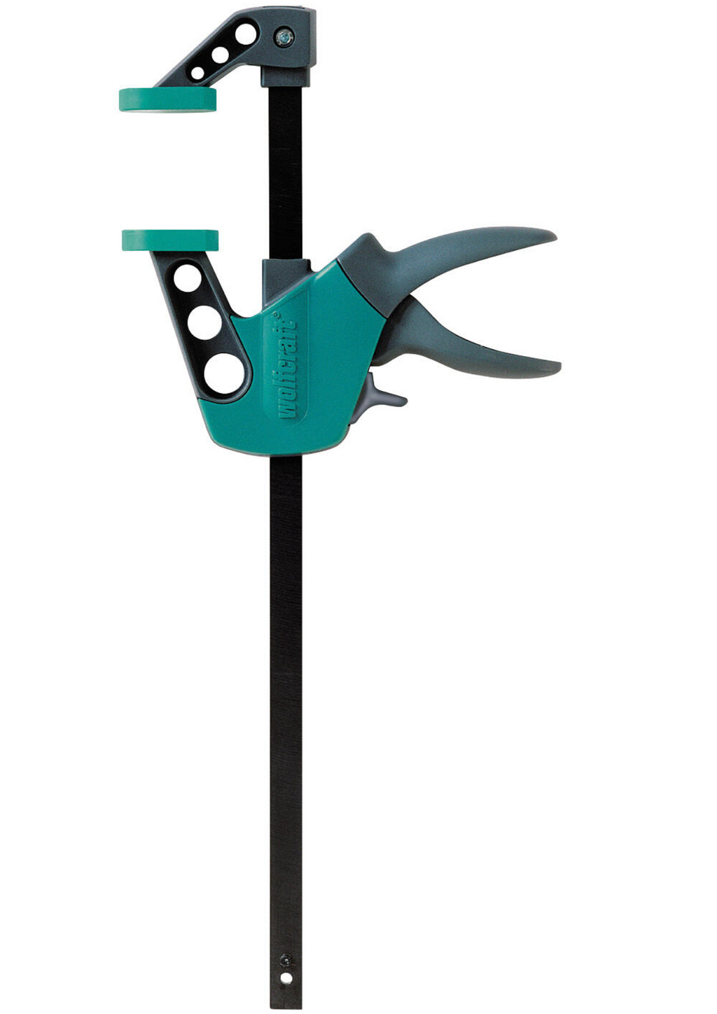 Robuste SARGENTO Monomanual Automático Spannzwinge mit 450 mm Spannweite. Ideal für präzises Fixieren von Werkstücken bei Holz-, Metall- und Renovierungsarbeiten. Ergonomisches Design und einhändige Bedienung sorgen für komfortables und schnelles Spannen.