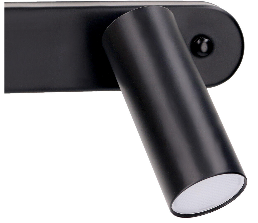 Moderno foco decorativo LED "Logos" con tres luces (12,6 W de potencia total) en color negro, ideal para interiores como salones, pasillos o encimeras de cocina. Bombillas LED integradas con flujo luminoso blanco neutro (aprox. 1260 lm), cabezales orientables, apto para montaje en pared o techo. Material: acero, acabado negro. Grado de protección IP20. Envío en 24 horas tras la recepción del pago.