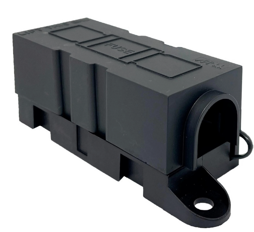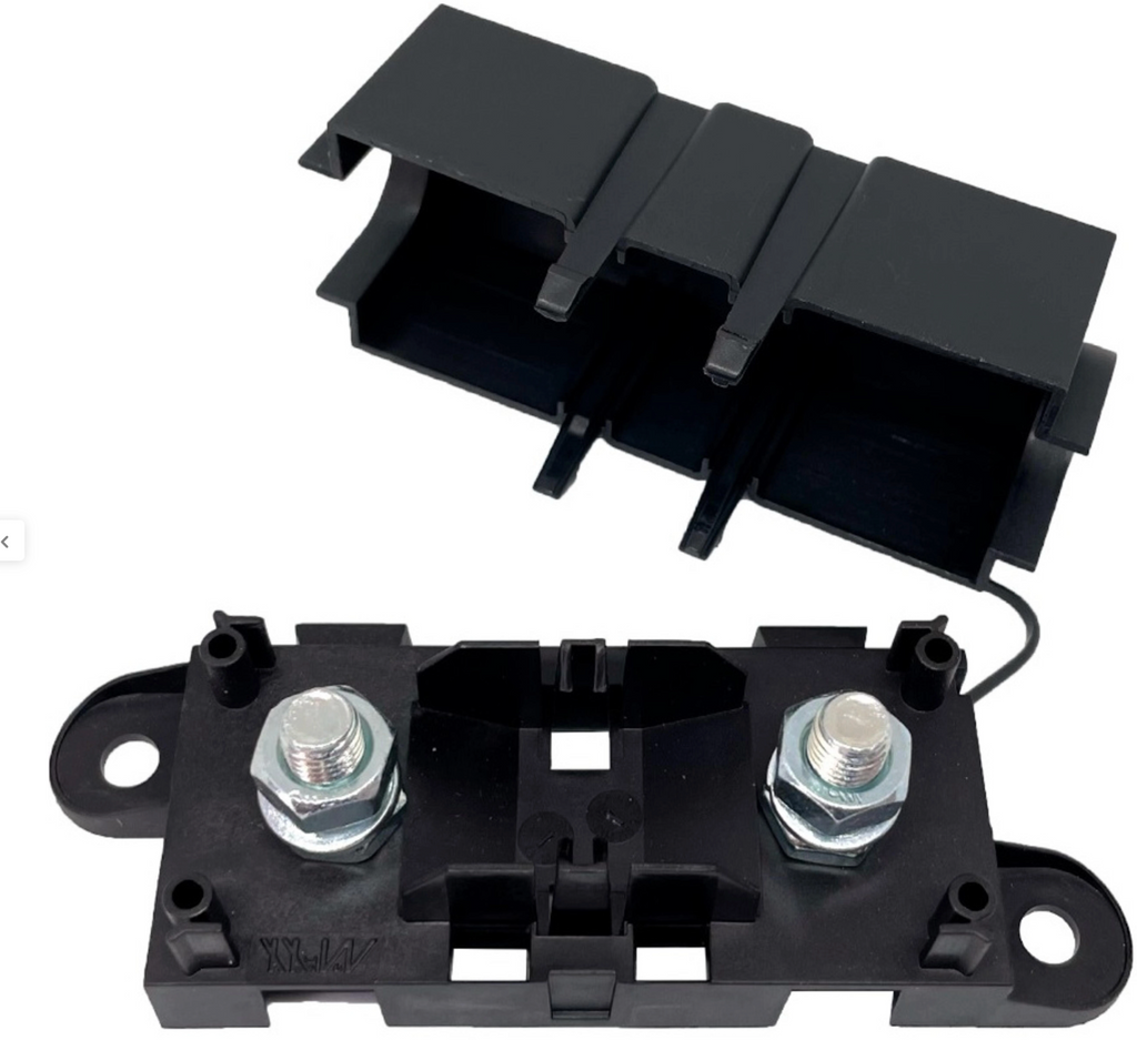 Portafusibles robusto para fusibles MEGA (de tira), ideal para la protección entre inversores y baterías u otros componentes de alta corriente en sistemas fotovoltaicos y de almacenamiento. Ofrece protección fiable para altas corrientes, es fácil de instalar y de fácil acceso. Listo para envío en 24 horas tras la recepción del pago.