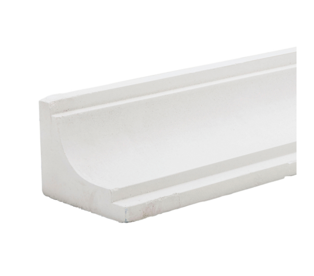 Pladur de 2 perfiles: elegante moldura decorativa con ranura semicircular y perfil de doble canto, ideal para acabados de techos y paredes en pladur o estuco. Material Escayola blanco, fabricado en España, decorativo y listo para pintar.