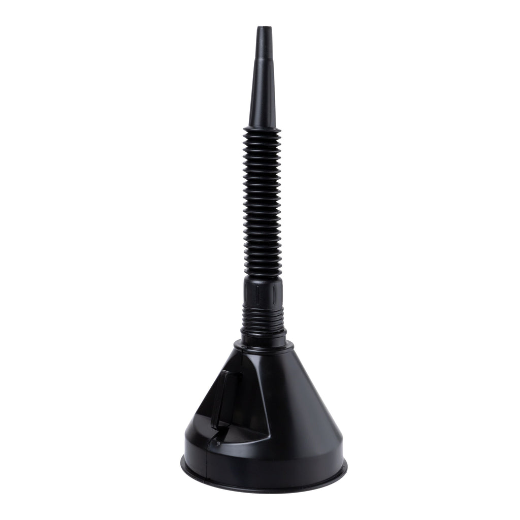 - Key Benefits: – Adapts to tight spaces for easy access to small openings – Built-in strainer filters debris during pouring to protect equipment – Collapsible design saves space in toolboxes or vehicles – Chemical-resistant material ensures safe handling of various fluids