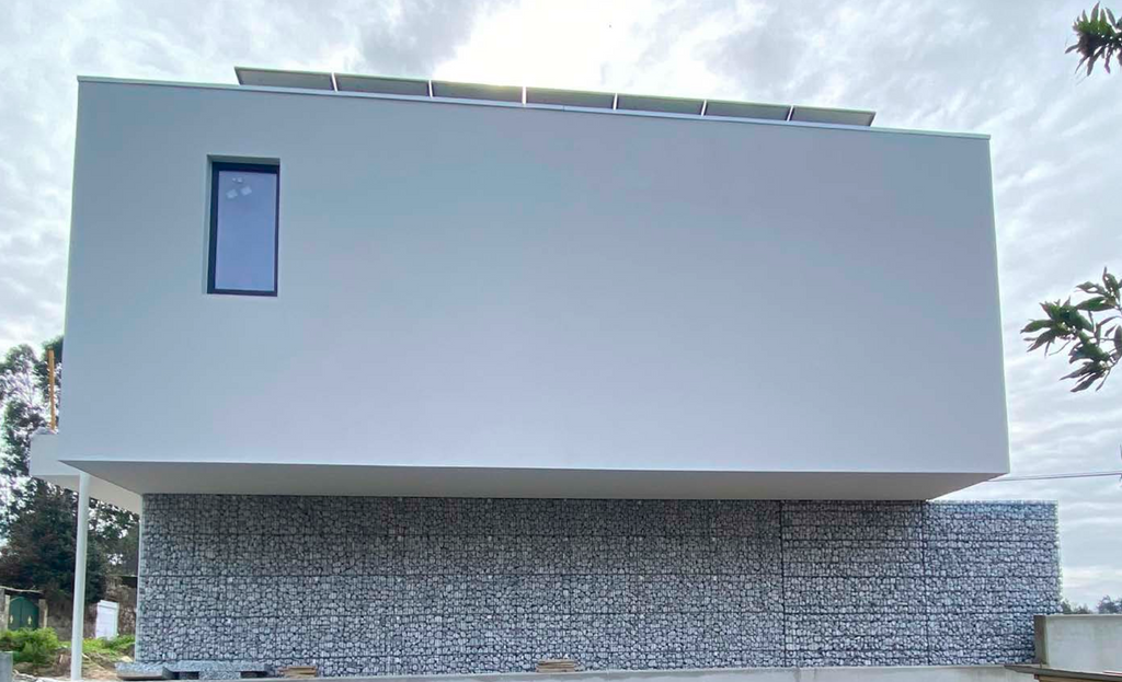 The Gabion Stone Vibrado Gris Nevada vibrated consists of a light gray granite-limestone mix that is compacted using a vibration process.