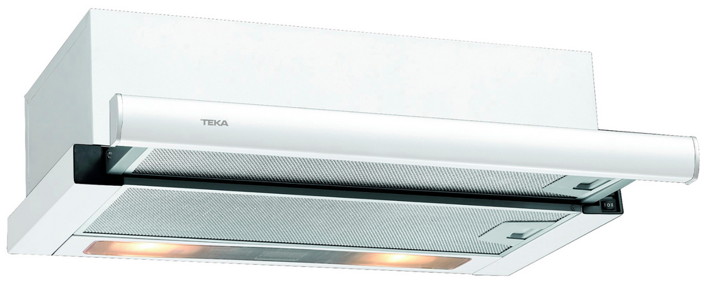 Télescopique Unterbau-Dunstabzugshaube mit weißer Front – idéal pour les pièces de cuisine compactes.