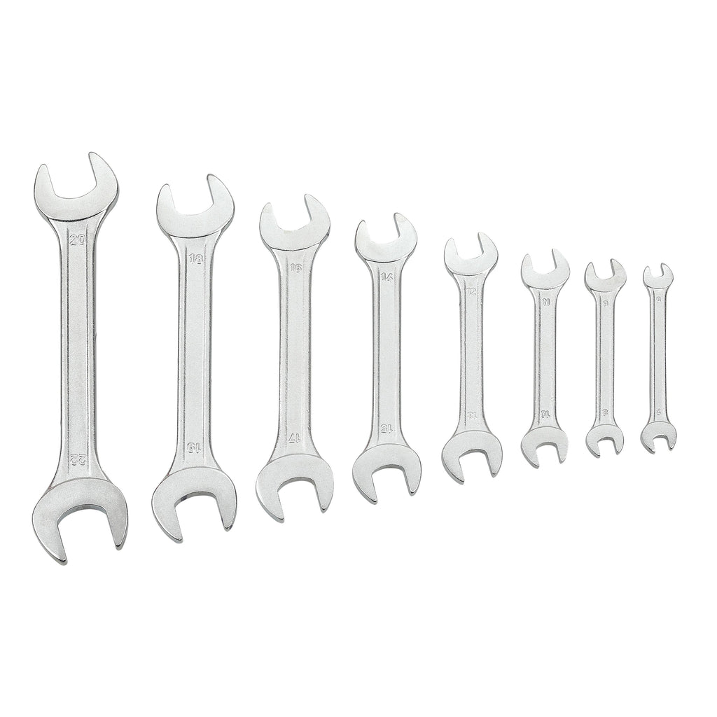 - Key Benefits: – Essential 8-piece range covers everyday fastener sizes from 6 to 22 mm – Slim jaws fit into confined spaces without rounding corners – Durable chrome finish resists rust and wipes clean quickly