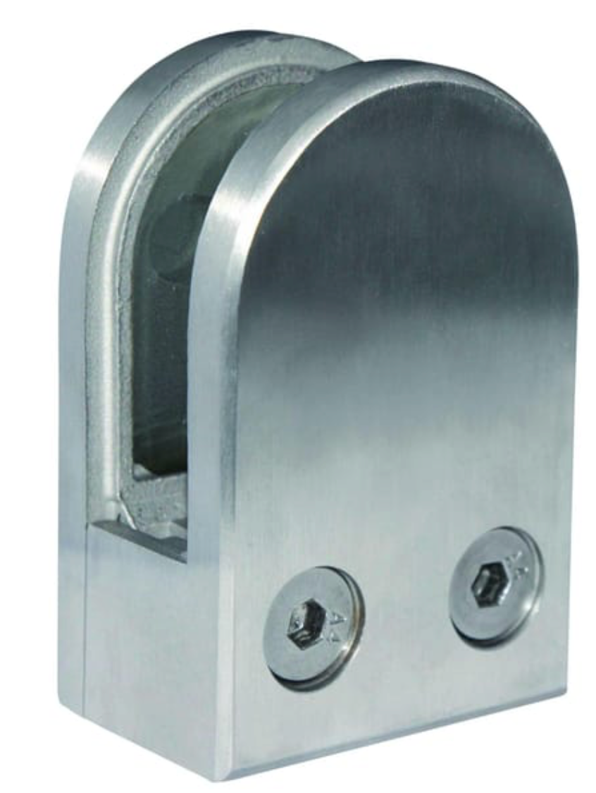 Hochwertige Wandhalterungen aus satiniertem Edelstahl AISI316, ideal für die Befestigung von Glasplatten mit einer Stärke von 8 mm bis 12 mm.