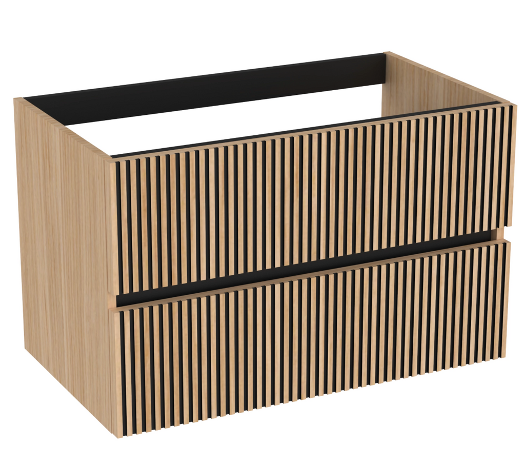 The vanity cabinet “Nova Geo” (80 × 45 × 50 cm) in light oak look comes pre-assembled and features two soft-close drawers – practical & elegant. Estimated