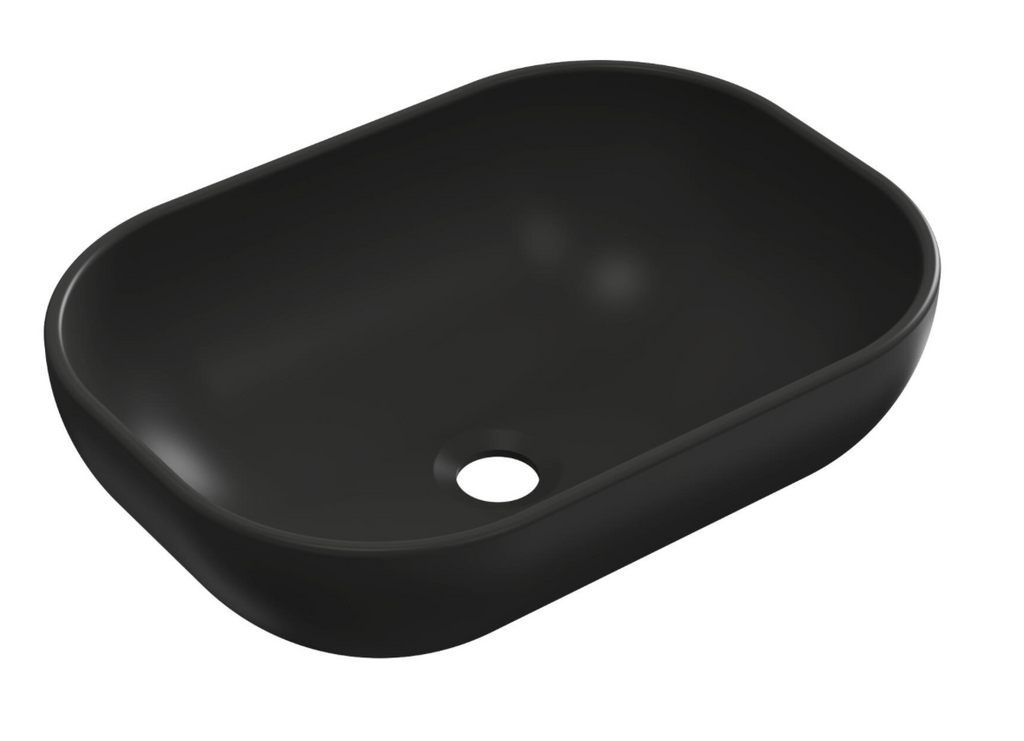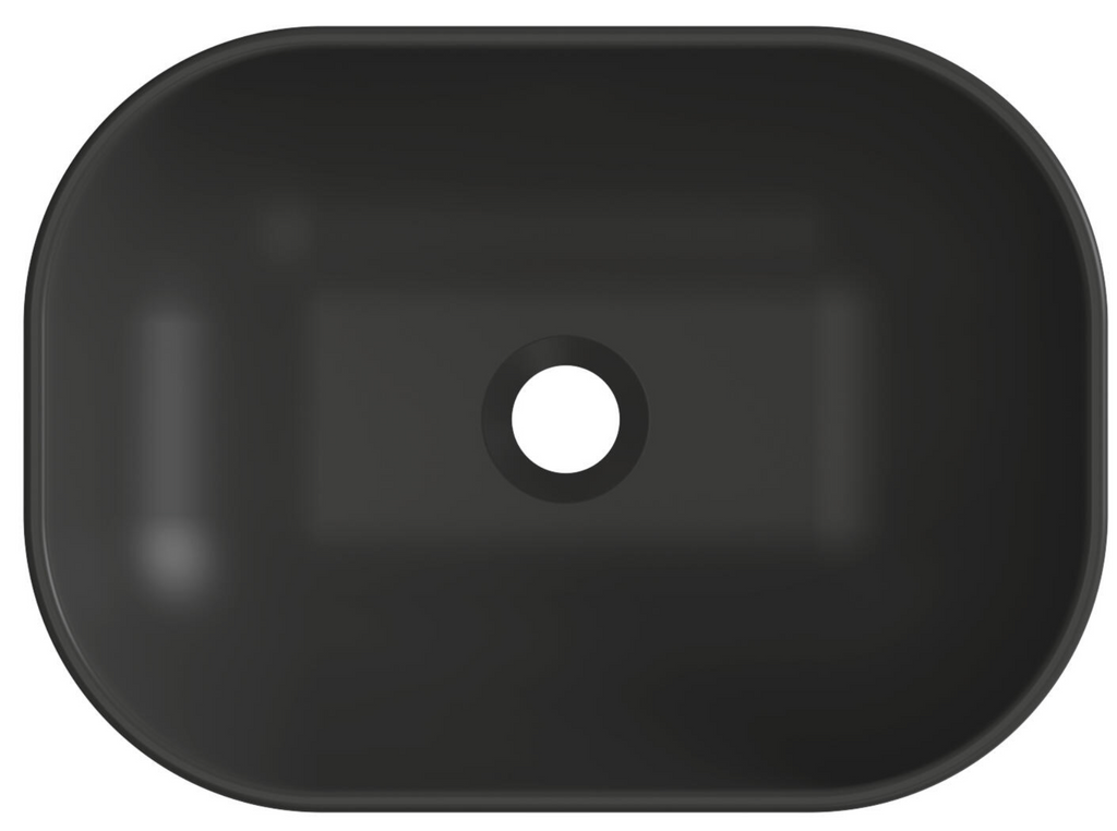 Oval vessel sink (46.5 × 34 × 12 cm, Matte Black) – elegant feel made from high-quality porcelain-ceramic, without overflow or faucet hole, allowing flexible installation options.
