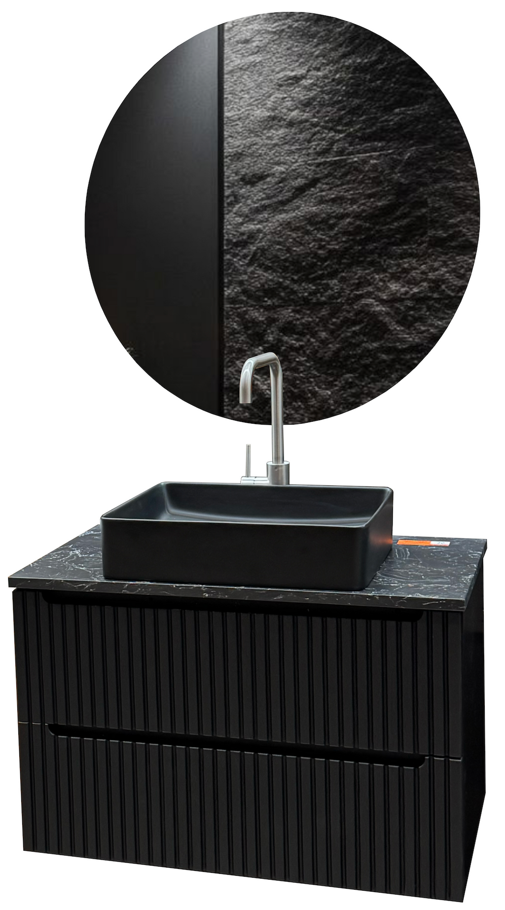 Model: Amsterdam LED Mirror Ø 80 cm + Vessel Sink 81 cm + Stone Countertop 80 × 46 cm