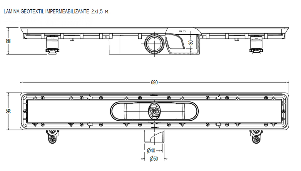 – Integrated siphon with odor trap and removable for maintenance