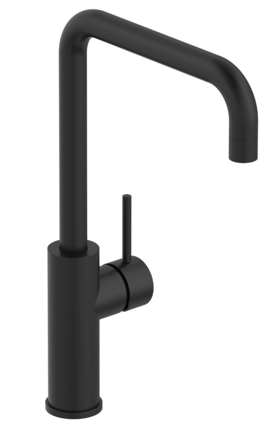 The high-quality Atlantis PVD kitchen faucet impresses with its modern matte black look (PVD coating) and high spout (350 × 205 mm). It is made of robust steel and features a Ø 35 mm ceramic cartridge for long-lasting use and precise control. Ideal for demanding kitchen installations where design and functionality are equally important.