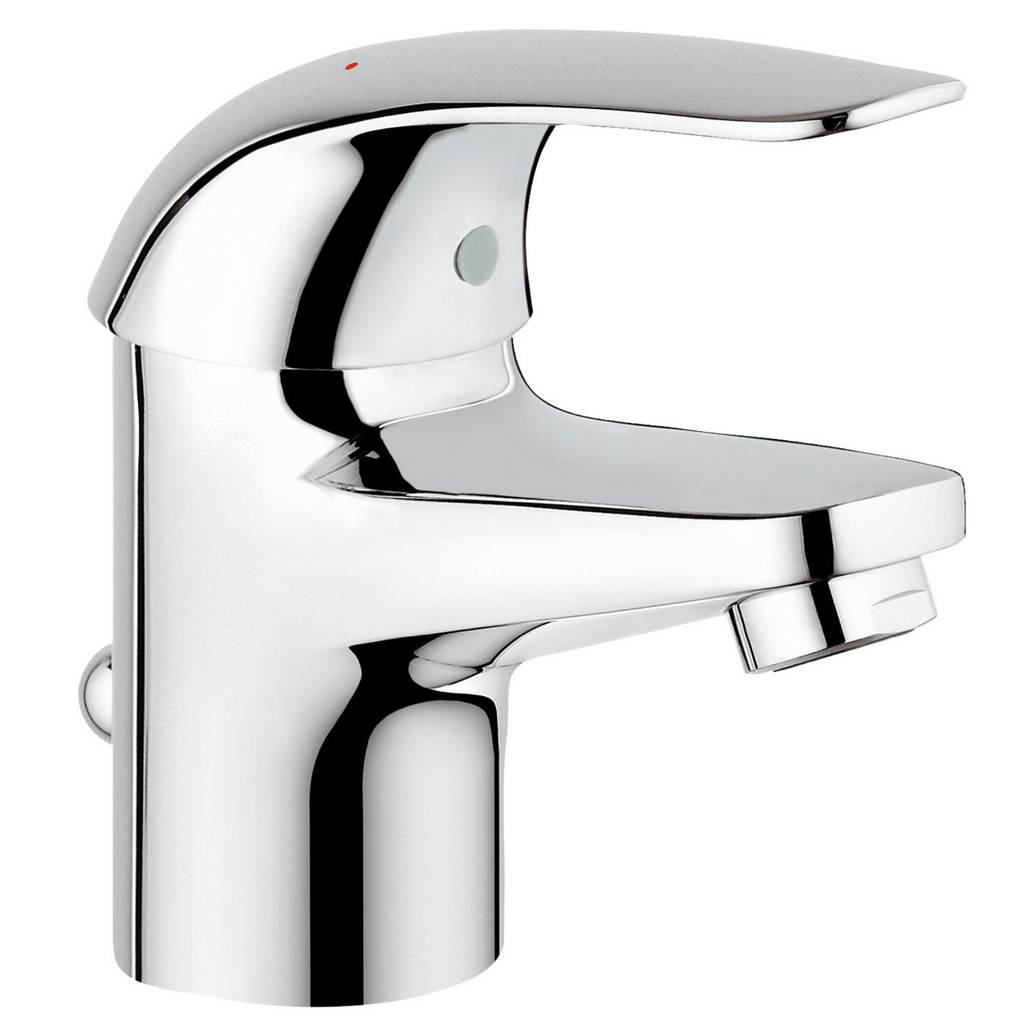 The single-lever faucet “Euroeco” for washbasins combines stylish chrome design with high-quality craftsmanship – ideal for modern bathrooms. The durable 35 mm ceramic cartridge mechanism ensures precise control of water flow and temperature, while installation is quick and easy thanks to the included flexible supply lines. Ready to ship within 24 hours after payment.