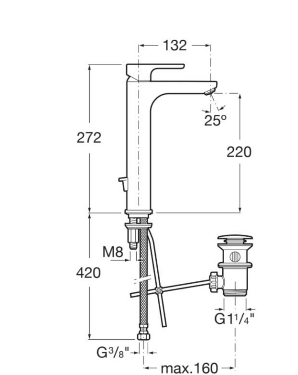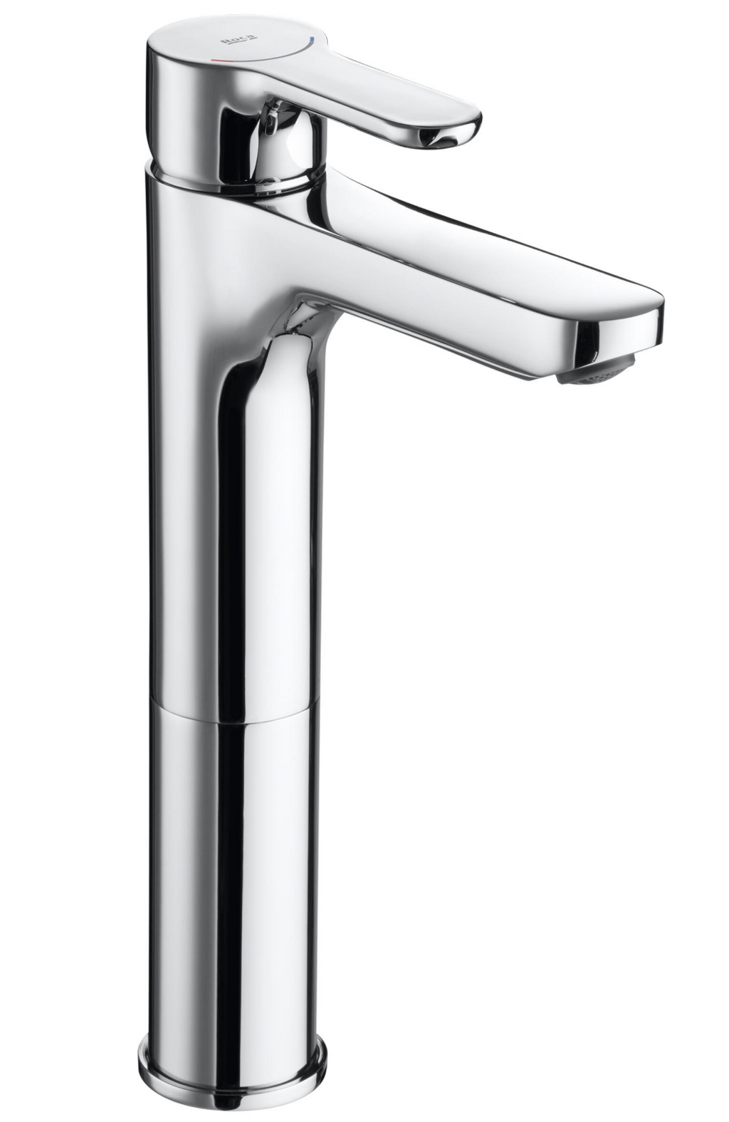 The L20 – High Spout single-lever basin mixer combines an elegant chrome finish with a high-quality brass body. It features a 40 mm ceramic cartridge (M3), a cold-start function for energy saving, and comes with flexible connection fittings. The high spout design makes it ideal for countertop basins.