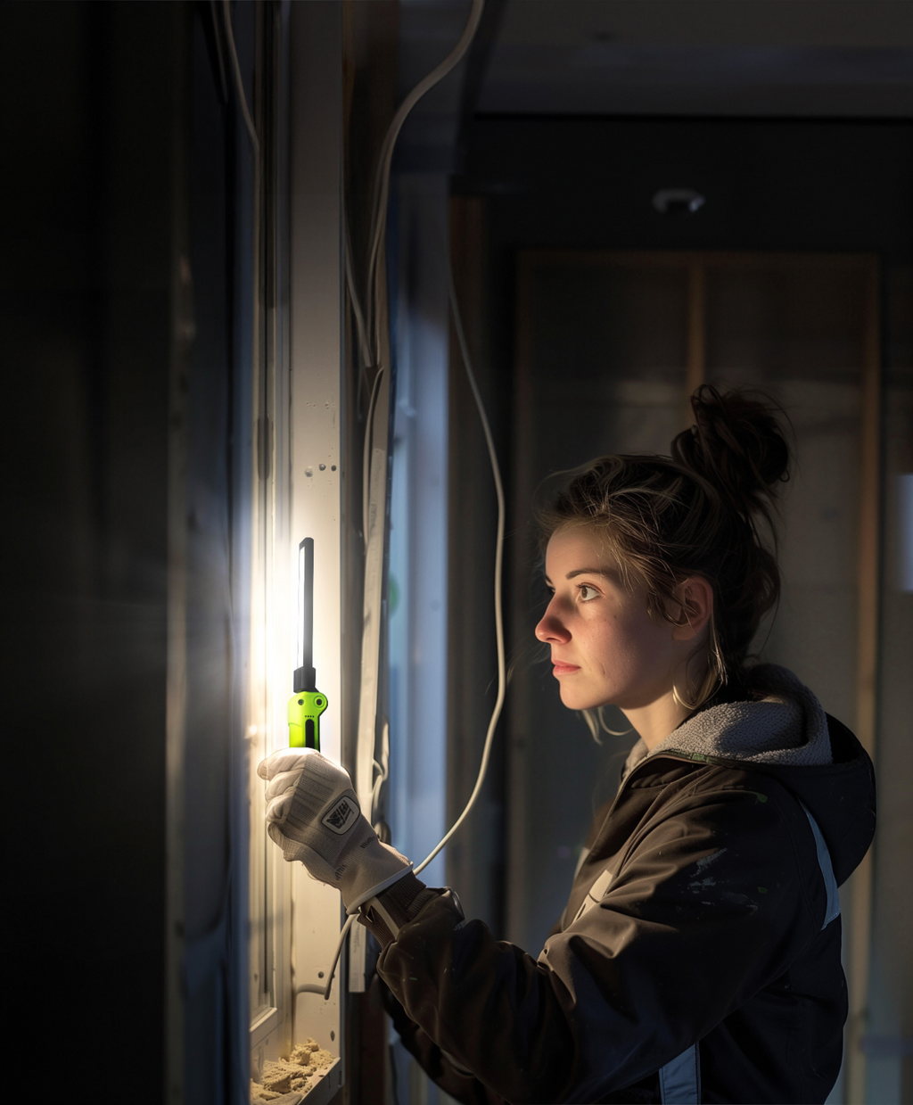 This compact, foldable LED workshop light delivers 500 lm brightness with 6 W power. Equipped with a built-in battery, UV light function, and USB charging port, it is ideal for workshops, repairs, and inspections.