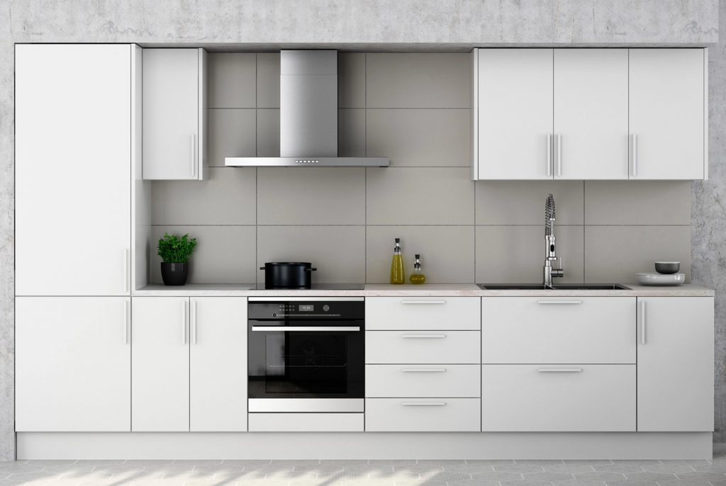 The kitchen model Lanzarote impresses with its modern and versatile design that blends harmoniously into any living environment. Made from high-quality PET super matte materials in a matte white anti-fingerprint finish, this kitchen combines functionality, elegance, and durability.