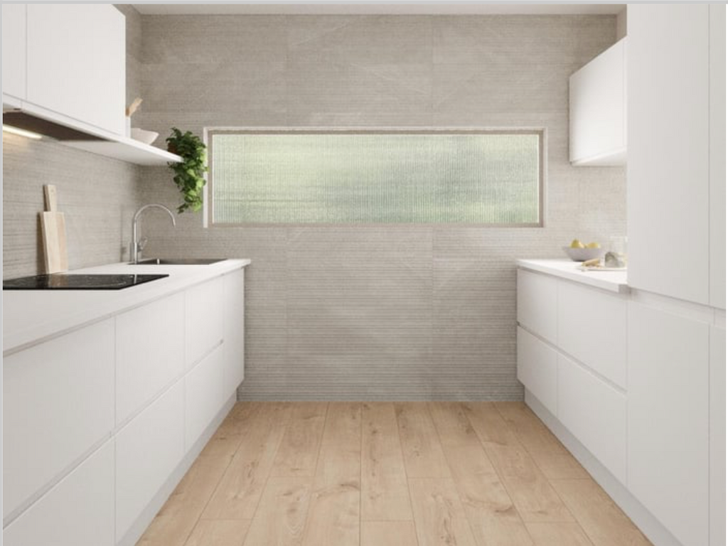 The Formentera kitchen combines modern design with a white PET super matte finish, bringing together elegance and functionality. The matte surface reduces reflections, creates a calm, clean atmosphere, and harmoniously adapts to various interior styles.