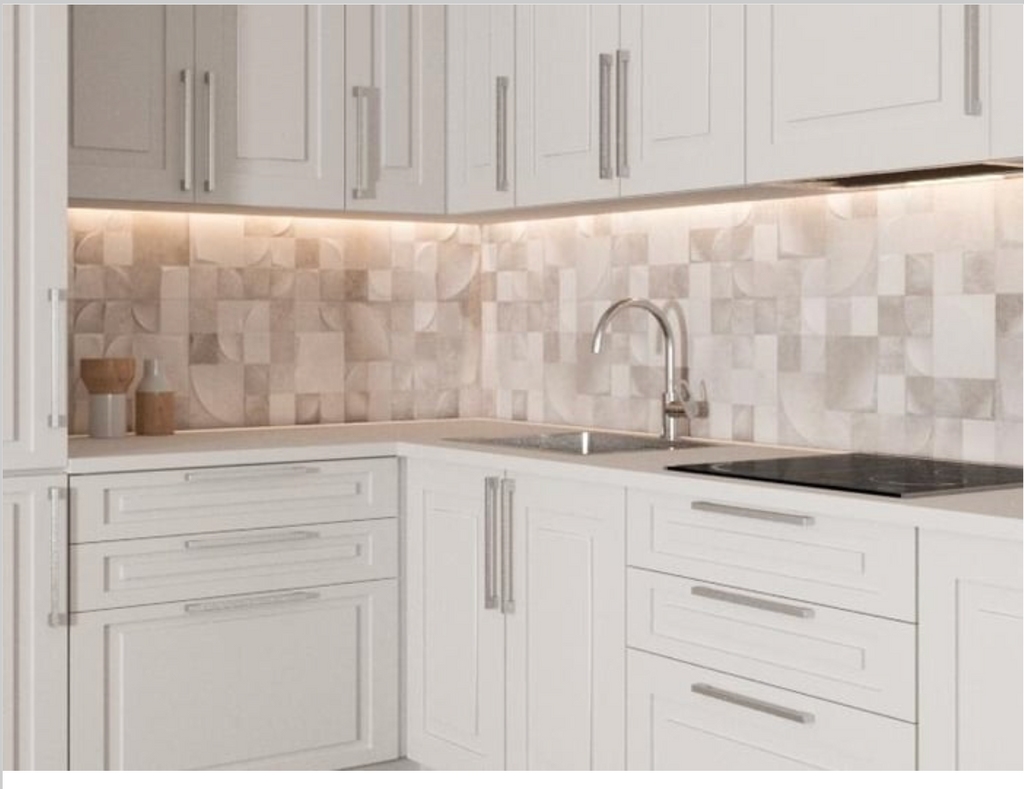 Made of high-quality PVC material in timeless white, the  Mallorca kitchen offers a durable and easy-to-maintain solution.