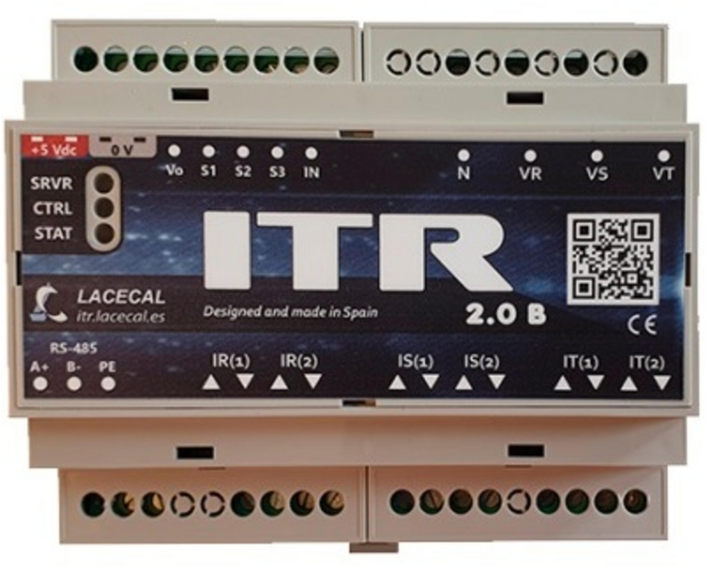 Advanced three-phase energy meter Lacecal ITR 2.0 with 5 A transformer (indirect measurement via current transformer), designed for precise monitoring and control in PV systems with self-consumption optimization or zero feed-in. Equipped with an integrated web server, extended communication interfaces (RS-485, RS-422, Ethernet), supports versatile inverters. Ready for shipment within 24 hours after payment receipt.