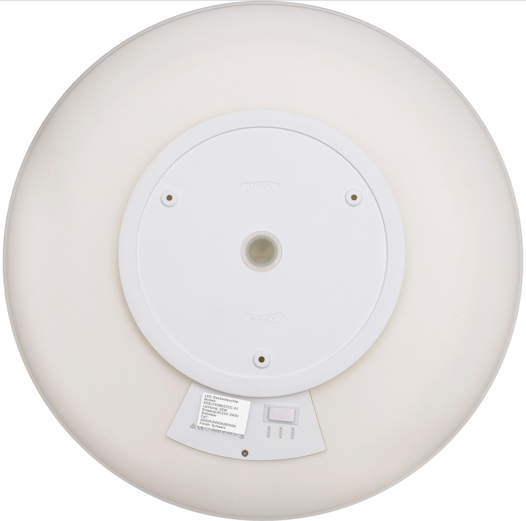 This elegant, round LED ceiling light with a diameter of 40 cm provides 25 W of power and a brightness of 2700 lm. It allows selection between three color temperatures (3000 K, 4000 K, and 6000 K) directly via an integrated switch. The fixture is ideal for indoor use in bathrooms and kitchens and offers splash protection (IP44).