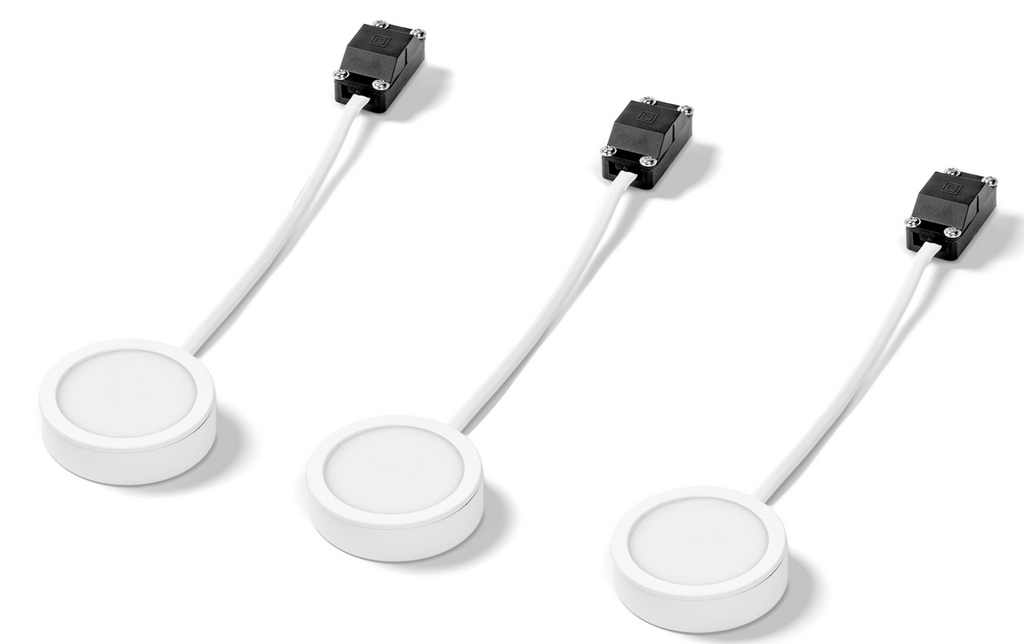 This elegant LED under-cabinet light with three integrated 3 W LEDs is ideal for mounting under furniture or on surfaces. With a diameter of 65 mm and a warm white light tone (3000 K), it provides pleasant illumination for kitchens, shelves, or work areas. The fixture can be recessed or surface-mounted, making it highly versatile. Ready to ship within 24 hours after payment.