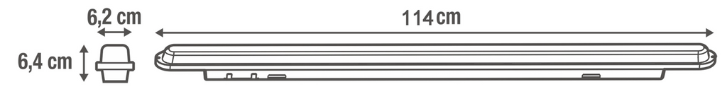Water- and dust-protected LED batten (IP65) with 20 W power, 114 cm length, and neutral white light, ideal for damp or technical spaces such as garages, basements, workshops, or storage rooms. Affordable and durable solution for energy efficiency and good visibility. Ready to ship within 24 hours after payment.