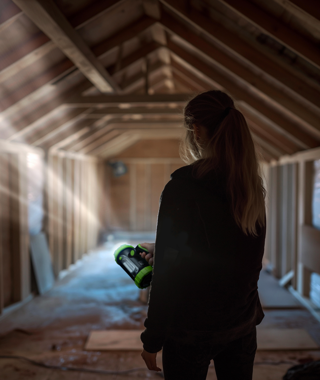 Compact and versatile Luceco LED flashlight with 300 lm front light and 170 lm side light. USB rechargeable and IP44 splash-resistant, it features three lighting modes (front, side, red) and an adjustable handle. The flashlight also functions as a power bank.