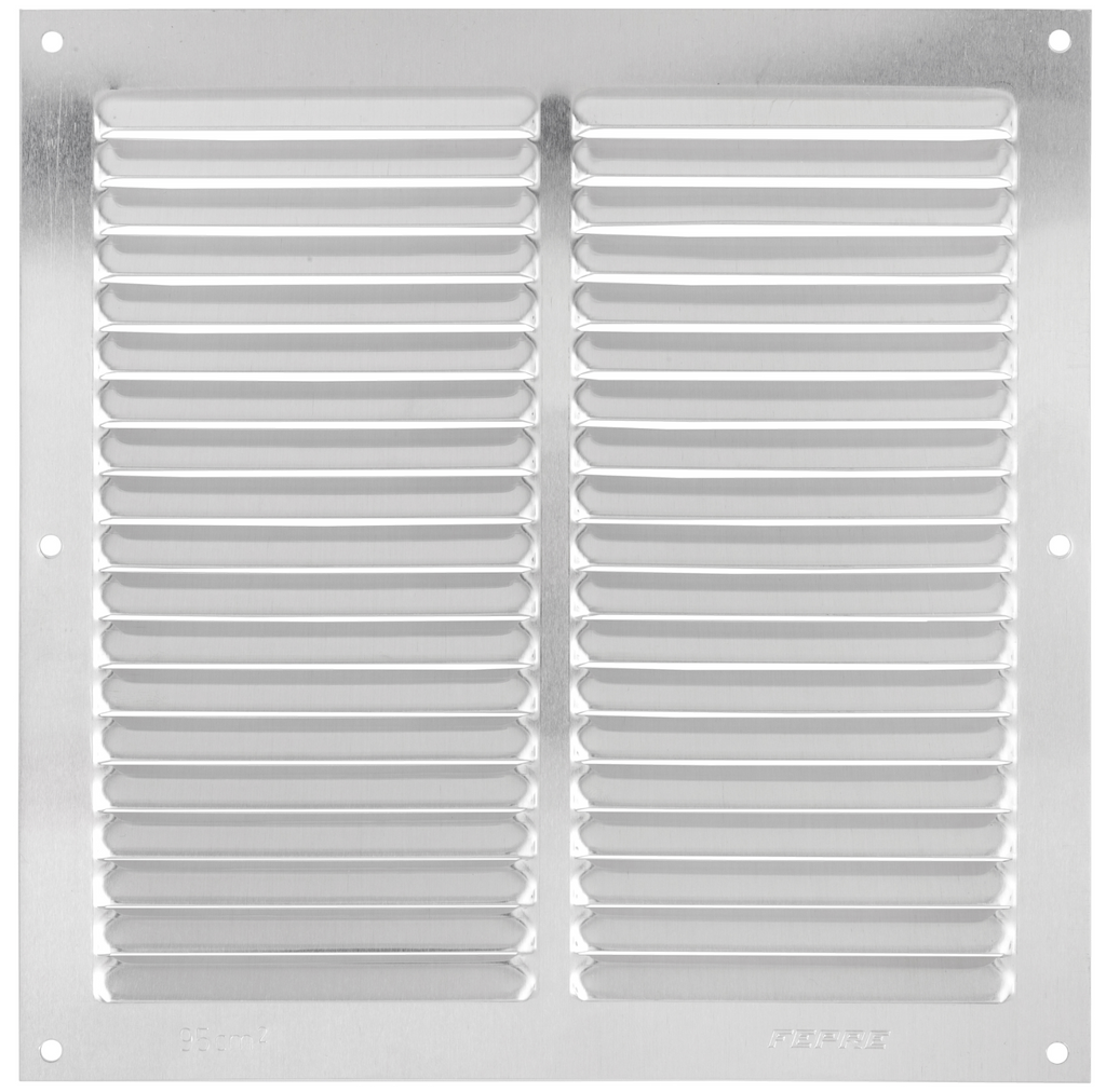 Sturdy surface-mounted ventilation grille made of untreated aluminum (natural gray) with a material thickness of 0.6 mm. Ideal for wall openings, basements, or facades to ensure effective ventilation – without visible fasteners. Ready to ship within 24 hours after payment.