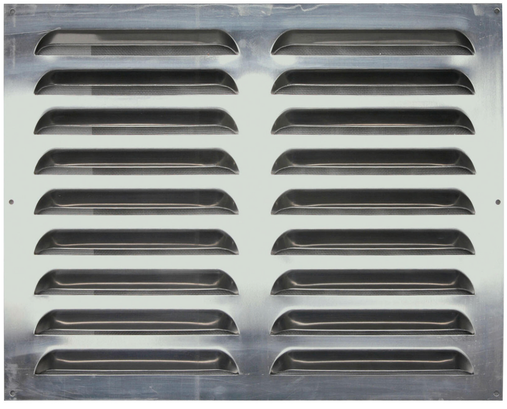Surface-mounted ventilation grille made of untreated aluminum with 1.5 mm thickness and robust construction. Ideal for exterior walls, basements, or large ventilation openings. Delivery and ready to ship within 24 hours after payment.