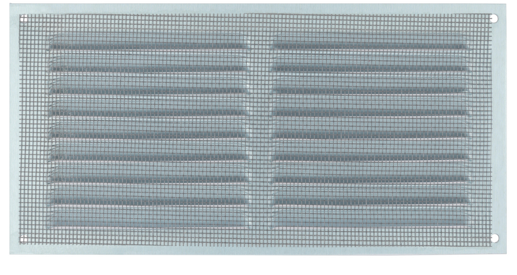 Robust surface-mounted ventilation grille with integrated insect protection. Made of untreated aluminum with a silver-gray finish, ideal for basements, storage rooms, or wall openings. Ready to ship within 24 hours after payment.