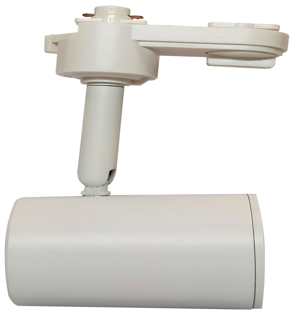 This single-phase track spotlight in white is ideal for lighting kitchens, workshops, and retail spaces. It is compatible with GU10 bulbs and allows easy installation on white tracks. Its compact design enables precise light positioning. Ready to ship within 24 hours after payment.