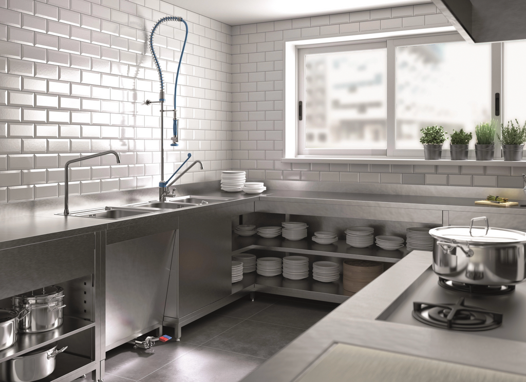 The INDUSTRIAL single-lever kitchen faucet combines a modern gray aesthetic with high-quality stainless steel and brass construction. Equipped with a powerful anti-backflow valve, it ensures water efficiency and hygienic operation. Ideal for professional kitchens or demanding home installations. Made in Spain – durable, easy to maintain, and efficient.