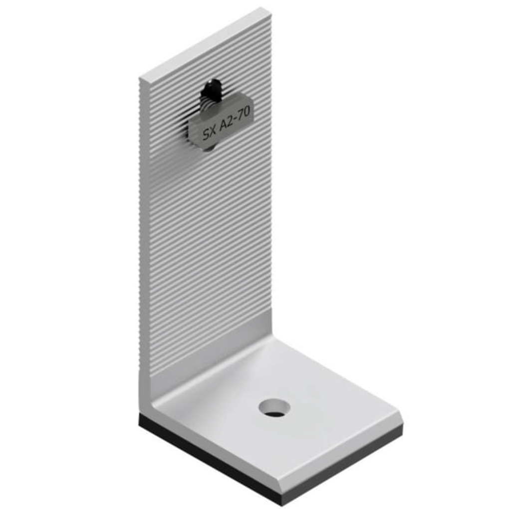 Der Montagewinkel S03 von Sunfer dient zur sicheren Befestigung von Photovoltaik-Montageschienen auf geneigten Dächern oder ebenen Flächen.