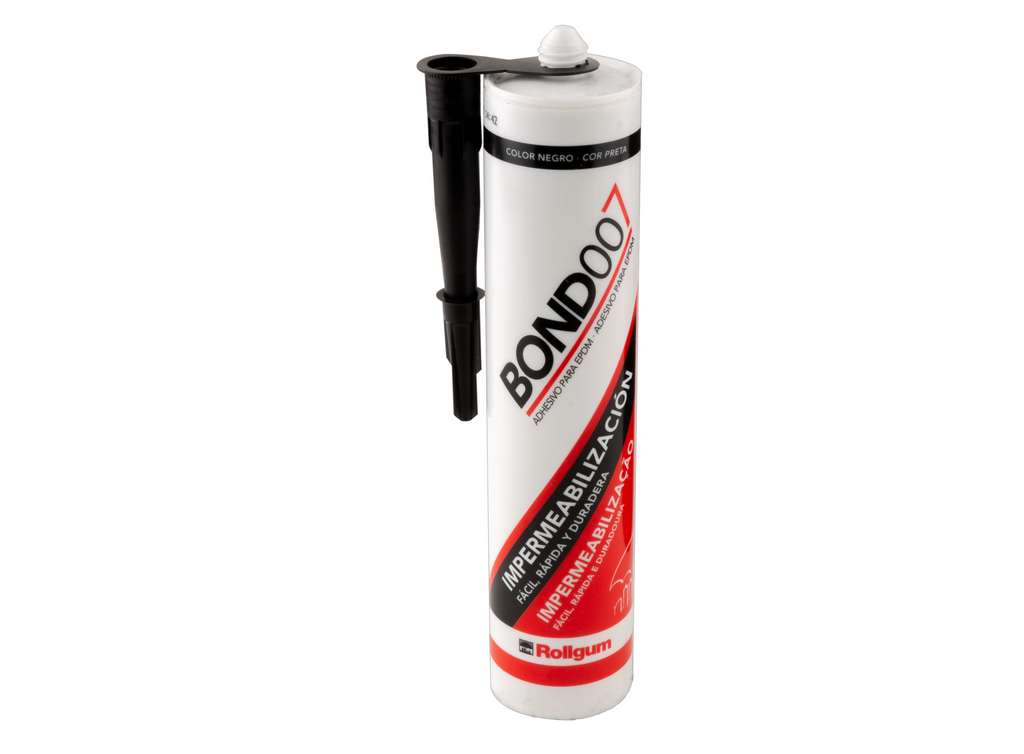bond007 ist ein schwarzer, einkomponentiger EPDM‑Klebstoff und Dichtstoff (290 ml Kartusche), hergestellt in Spanien. Entwickelt für das sichere Verkleben von EPDM‑Membranen, auch auf feuchten Oberflächen oder unter Wasser. Hoch elastisch, UV‑beständig und witterungsfest – ideal für Abdichtungen im Dach‑ und Baubereich. Anwendung erfolgt einfach mit Auspress‑Pistole, einseitig auf die Fügeflächen auftragen.
