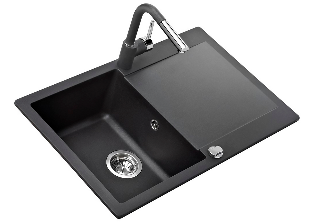 The TEQUARTZ single-bowl sink with drainer impresses with its modern, square design in elegant black. Measuring 78 × 49.5 × 19 cm, it fits perfectly into kitchen units from 80 cm width and can be installed flush or as a top-mount. The drainer, made of the same material, protects the countertop and adds functionality. Made in Spain from high-quality TEQUARTZ resin – durable, easy to maintain, and aesthetically pleasing. Ideal for demanding kitchen projects.