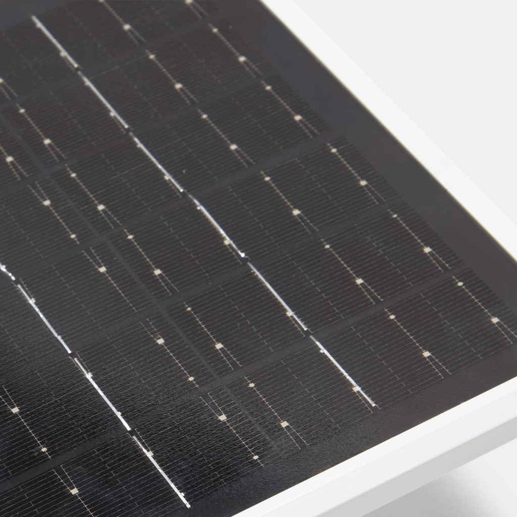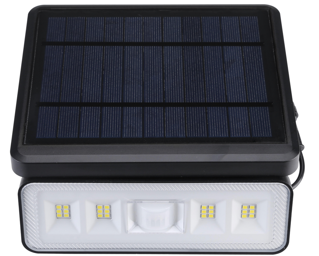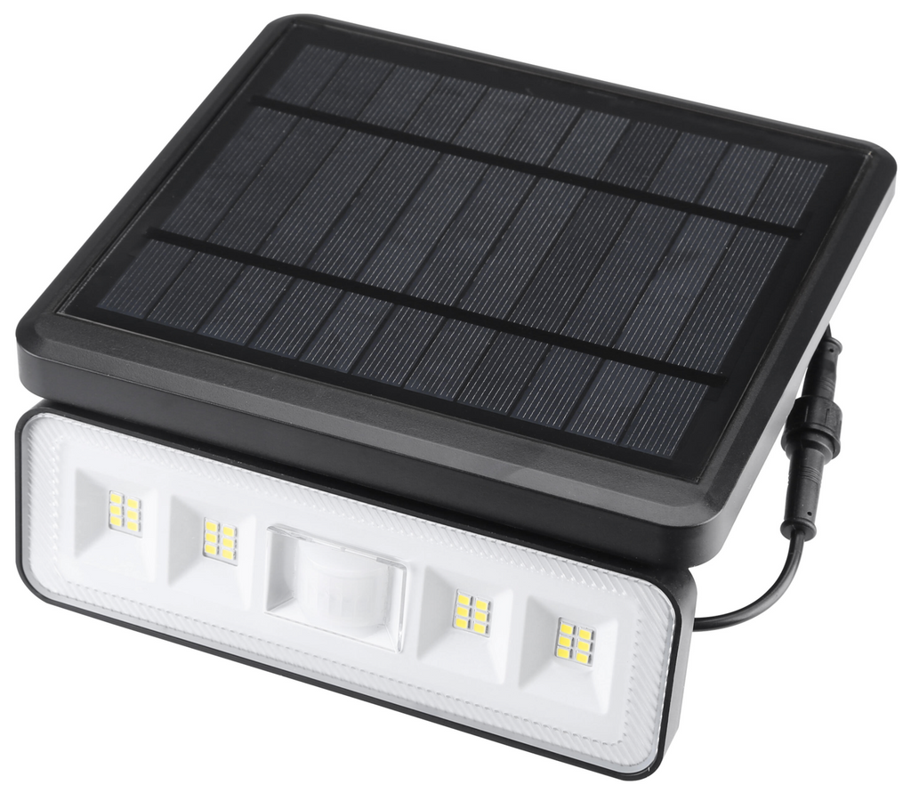 This solar floodlight with 8 W power and neutral white light (4,000 K) provides compact, self-sufficient outdoor illumination with an integrated motion sensor. With its adjustable lamp (up to 90°) and IP54 protection rating, it is ideal for entrances, pathways, or façades.