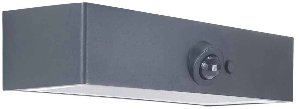The Leda solar wall light with 6.5 W power delivers 960 lumens of neutral white light (4,000 K). It features an integrated motion and dusk sensor, as well as three adjustable lighting modes. With an IP54 protection rating, it is ideal for outdoor use.