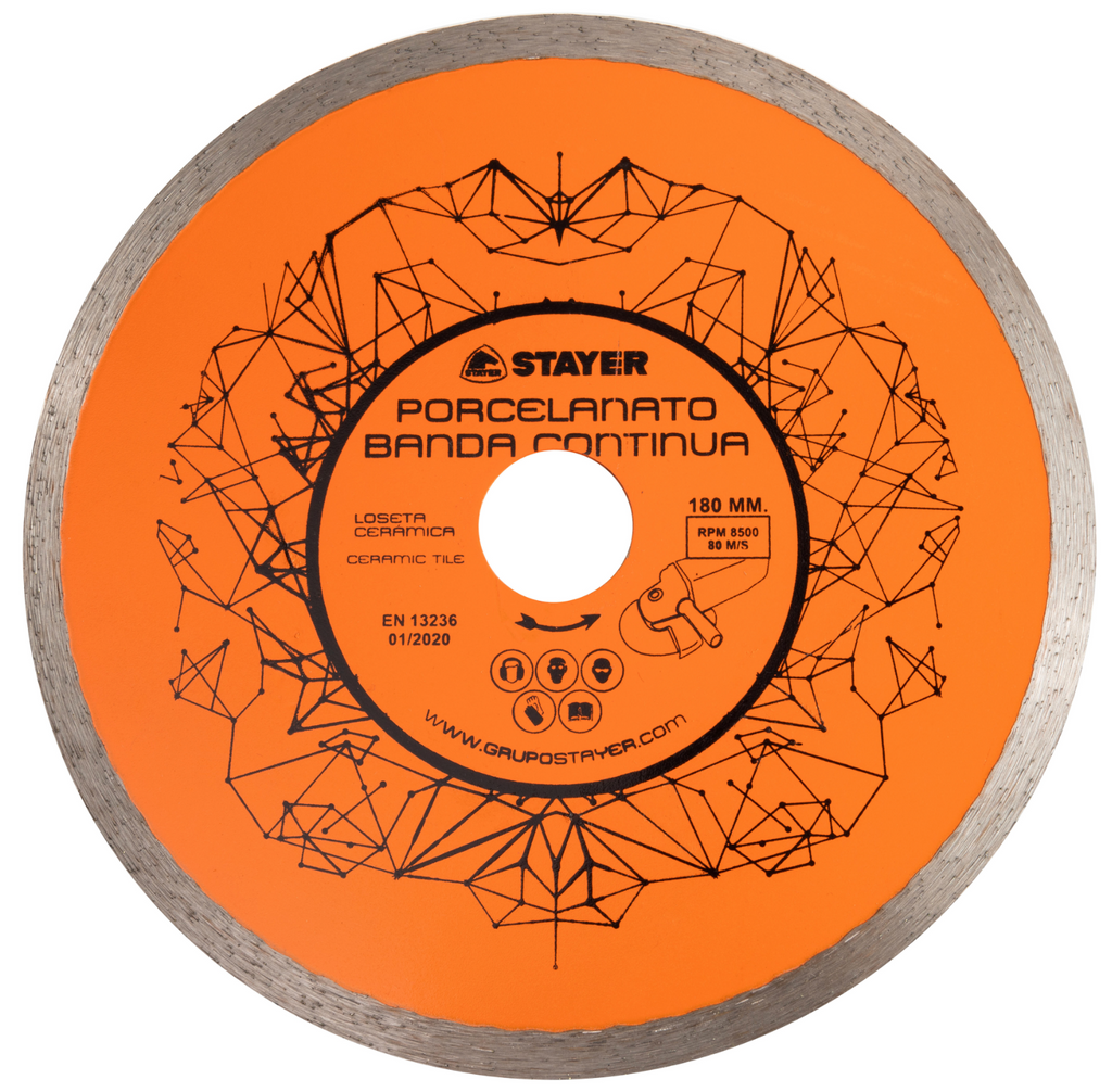 The STAYER Diamond Cutting Disc 180 mm with a continuous rim is a professional-grade blade designed for table saws and wet tile cutters, delivering clean, precise, and chip-free cuts on porcelain stoneware, ceramic tiles, marble, and granite.