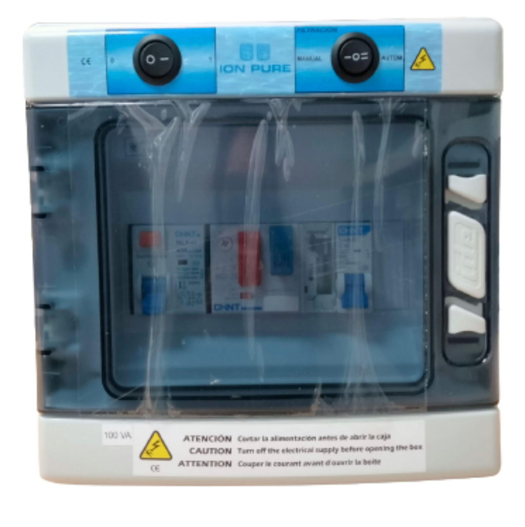 Robust control box for pool pumps with power ratings from 0.75 to 1 PS. Ideal for private pools or small hotel installations. The weatherproof housing (IP55) reliably protects against splashing water.