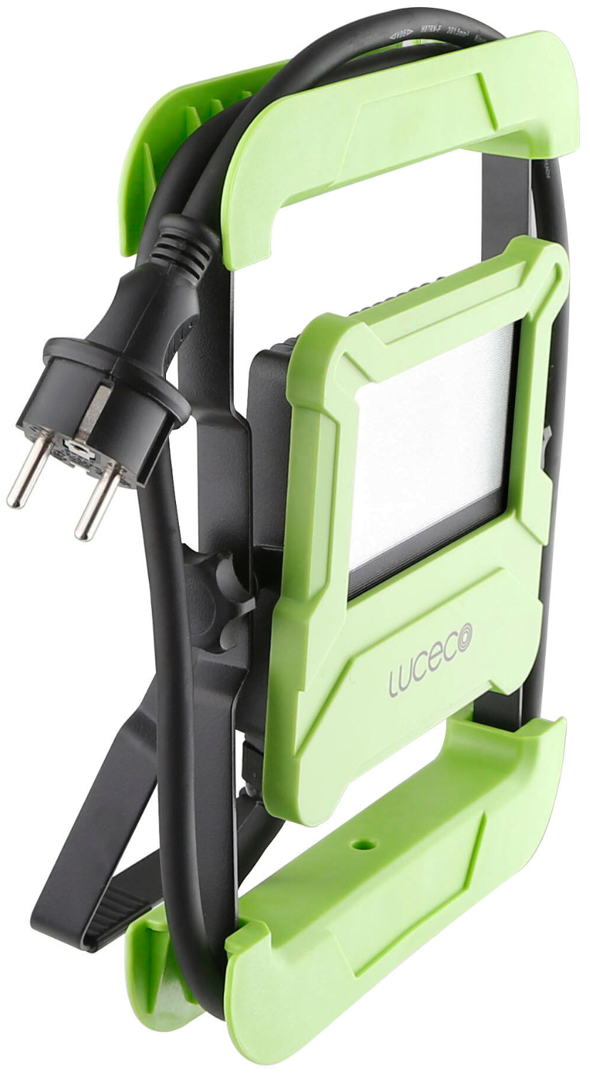 Compact, portable LED projector with 30 W power and 2,400 lumens brightness. Perfect for construction sites, workshops, or outdoor use. Features an integrated cable reel, weatherproof switch, and IP54 protection. Ready to ship within 24 hours after payment.