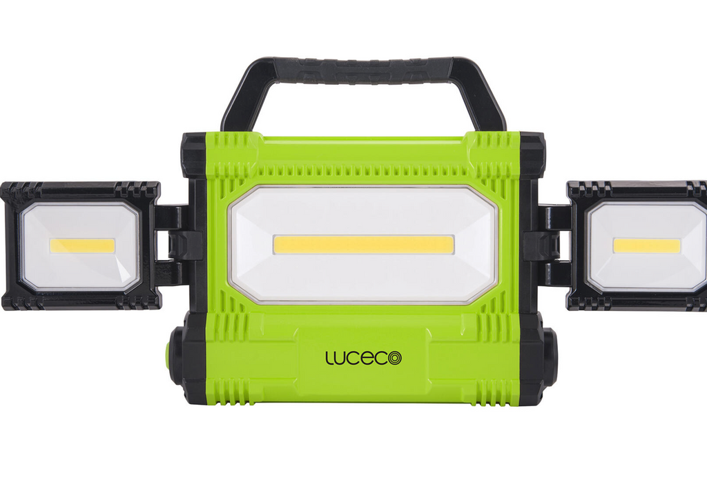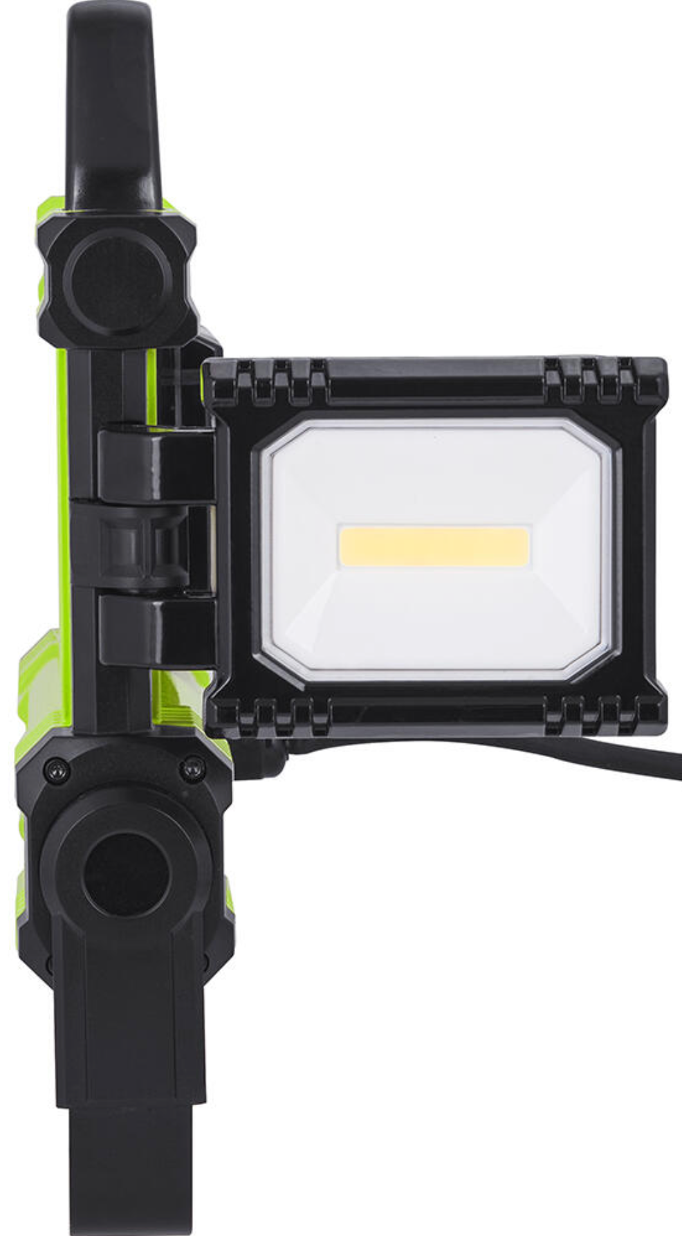 Compact, portable LED projector with 50 W power and 5,000 lumens brightness. Ideal for construction sites, workshops, or outdoor use. Features 3 powerful LED sources, 180° tiltable lights, and 300° rotatable housing. IP54 protection and battery-operated. Ready to ship within 24 hours after payment.