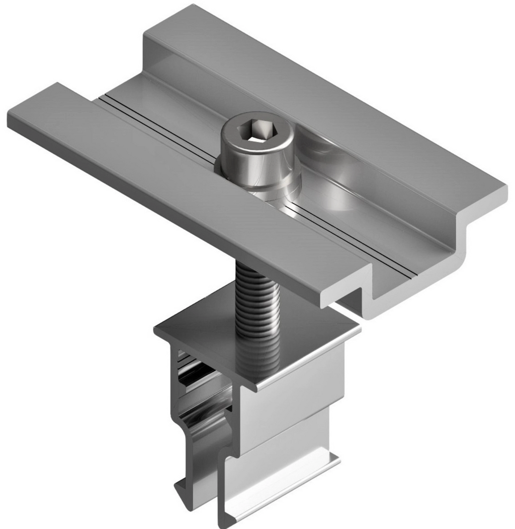 The Central Presser S11 Sunfer is used in PV flat roof mounting systems to securely fix solar modules to the support profiles. With 100 units per set, it is ideally suited for larger installations or series installations. The presser ensures even pressure distribution on the modules and increases the stability of the overall system.